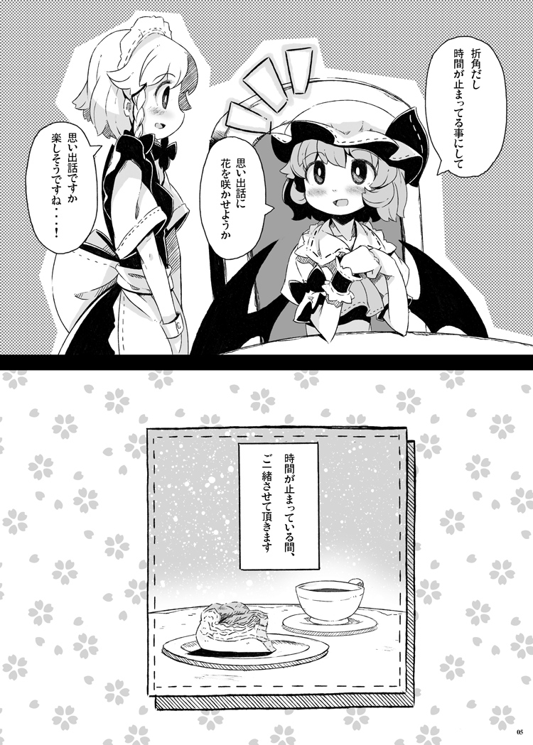 僕が主に咲夜視点、とらこさんがレミリア視点の漫画を描きました。
